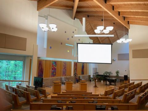 This project has been in various stages of research and development for quite some time. Conversations have been engaged with the worship team, tech team, Coordinating Team, Board of Trustees, music team, sound team, buildings and grounds team, staff, and more. There have been a variety of ideas and iterations of options for how the project could work within the physical space and enhance worship at ERUUF. We are excited to be moving forward now and grateful for a grant from the Eno River Fellowship Foundation and Board approval for additional ERUUF reserve funds that will make this project possible.