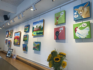 The first show for the Art Gallery's 2024-2025 season features artist, and ERUUF member, Amy Wilson-Stronks. Her art expresses feeling and emotion through color and movement in representative and non-representative forms inspired by animals, farms, and nature. This show features Amy's "Barn" series and her "Animal Squares." Her Barn series was inspired by her Michigan barn and continues with scenic barns here in North Carolina. Amy's Animal Squares are fun, sassy, and whimsical; featuring each animal's personality and what they have to say. Ask her about a personalized Animal Square for your favorite pet!
